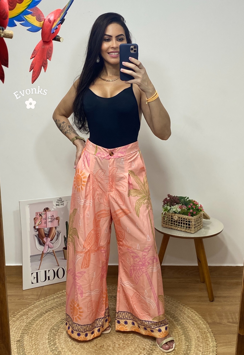 Apresentamos a Calça Pantalona Insp. FARM, a combinação perfeita de estilo e conforto para o seu guarda-roupa! Com uma estampa exclusiva que se destaca, esta calça é feita de viscose, um tecido que oferece maciezrespirabilidade e um caimento perfeito.