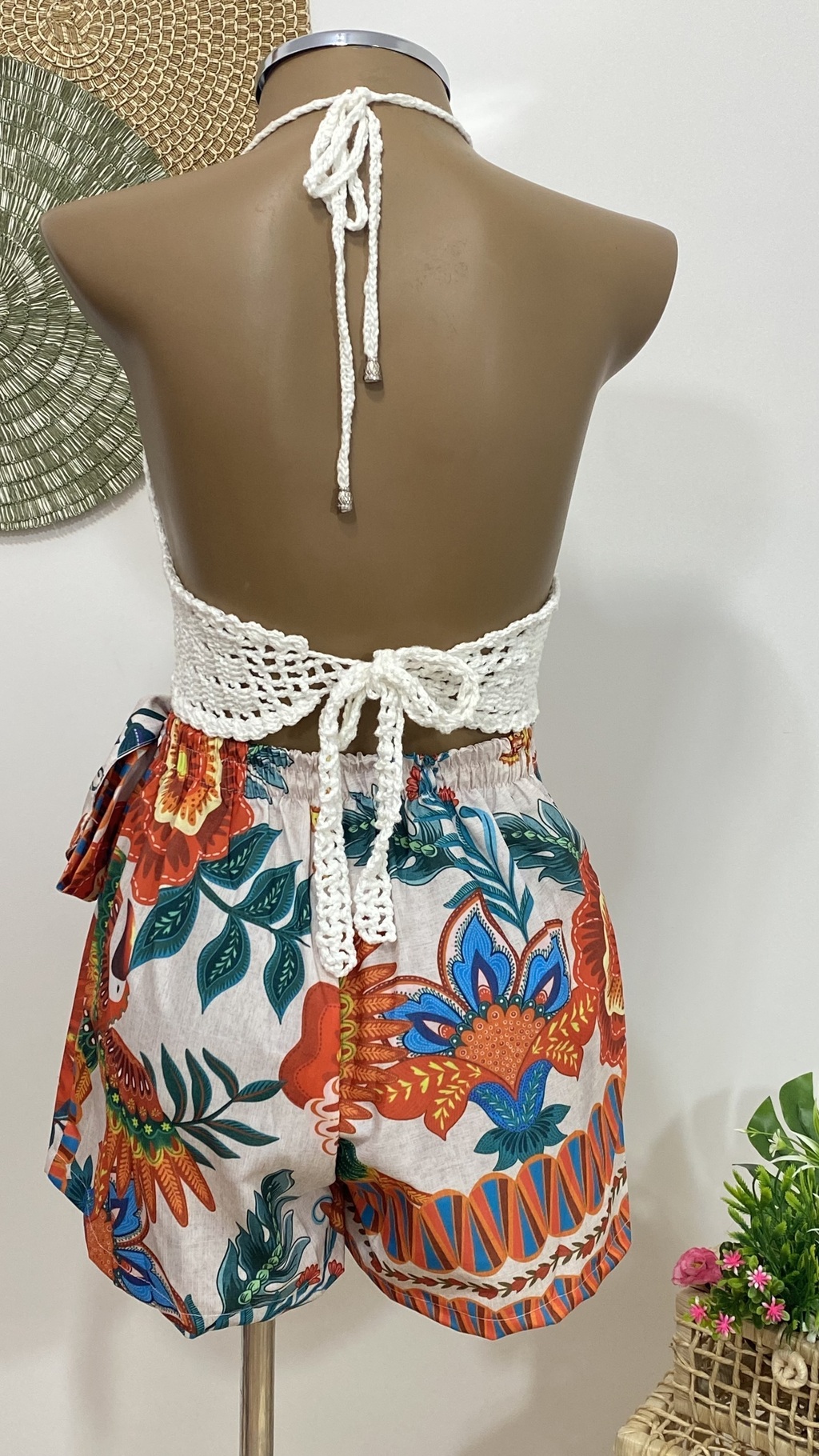 Este conjunto Florescer é composto por 2 peças ,(kimono e short) .