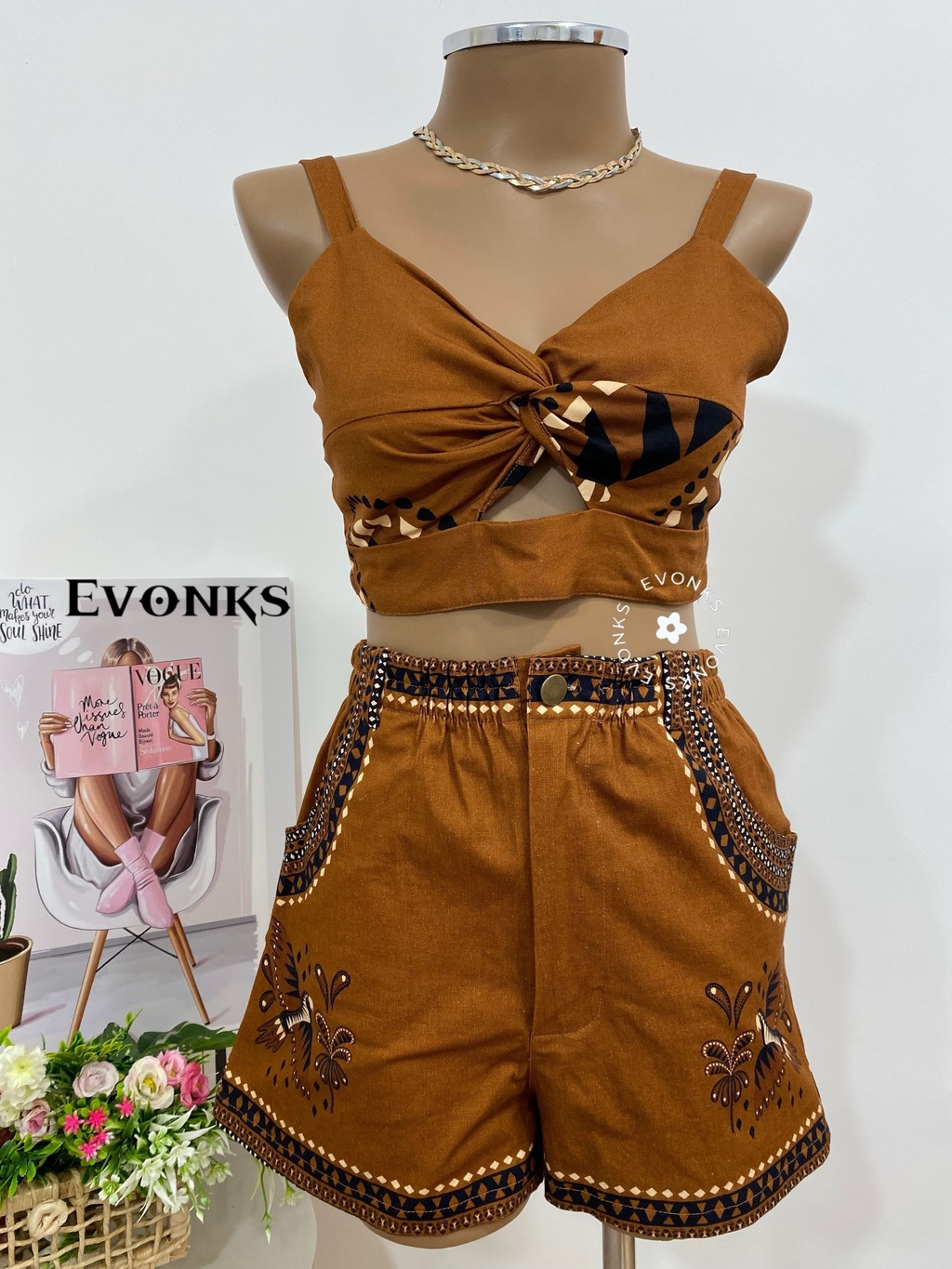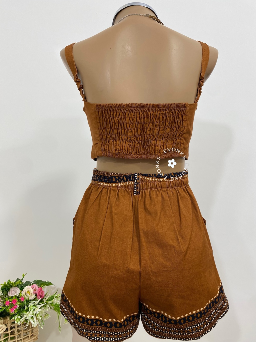 O Top é aquela peça para usar no dias quentes do outono e combinar com vários shorts . É confeccionado em tecido viscose que proporciona conforto e caimento à sua peça.Tem as alças ajustáveis. Na parte de trás, ele tem elástico . Sem bojo e é forrado do próprio tecido.