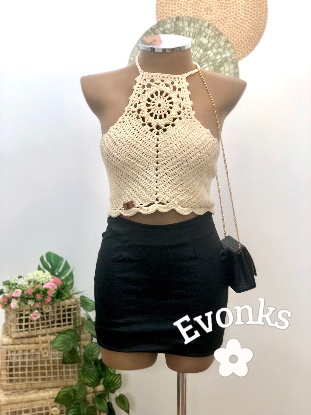 Política de troca: Cada peça Cropped de Crochê antes do envio ao Cliente, é minunciosamente revisada pela equipe da Evonks para que chegue até você em total perfeição, pois garantimos qualidade em cada peça. Atente nas medidas que se encontra aqui na Descrição do produto,pois só trocamos a peça de crochê em caso de defeito, sendo assim o frete fica por conta da loja somente em caso de defeito. Não fazemos troca da troca .