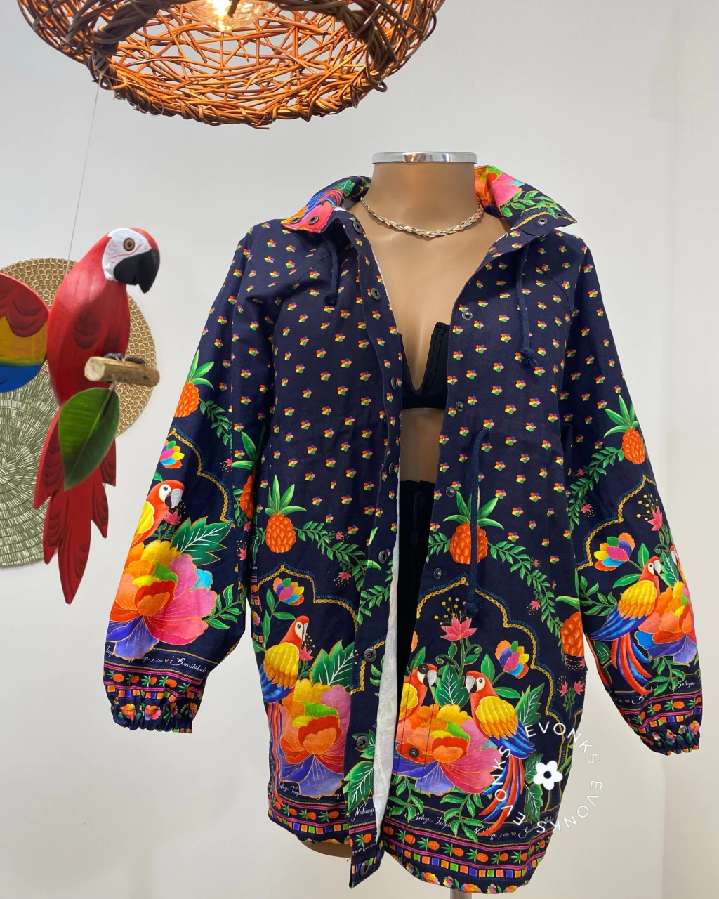 Sinta-se aquecida e estilosa com essa parka que é a cara Tropical do Brasil! 🌟