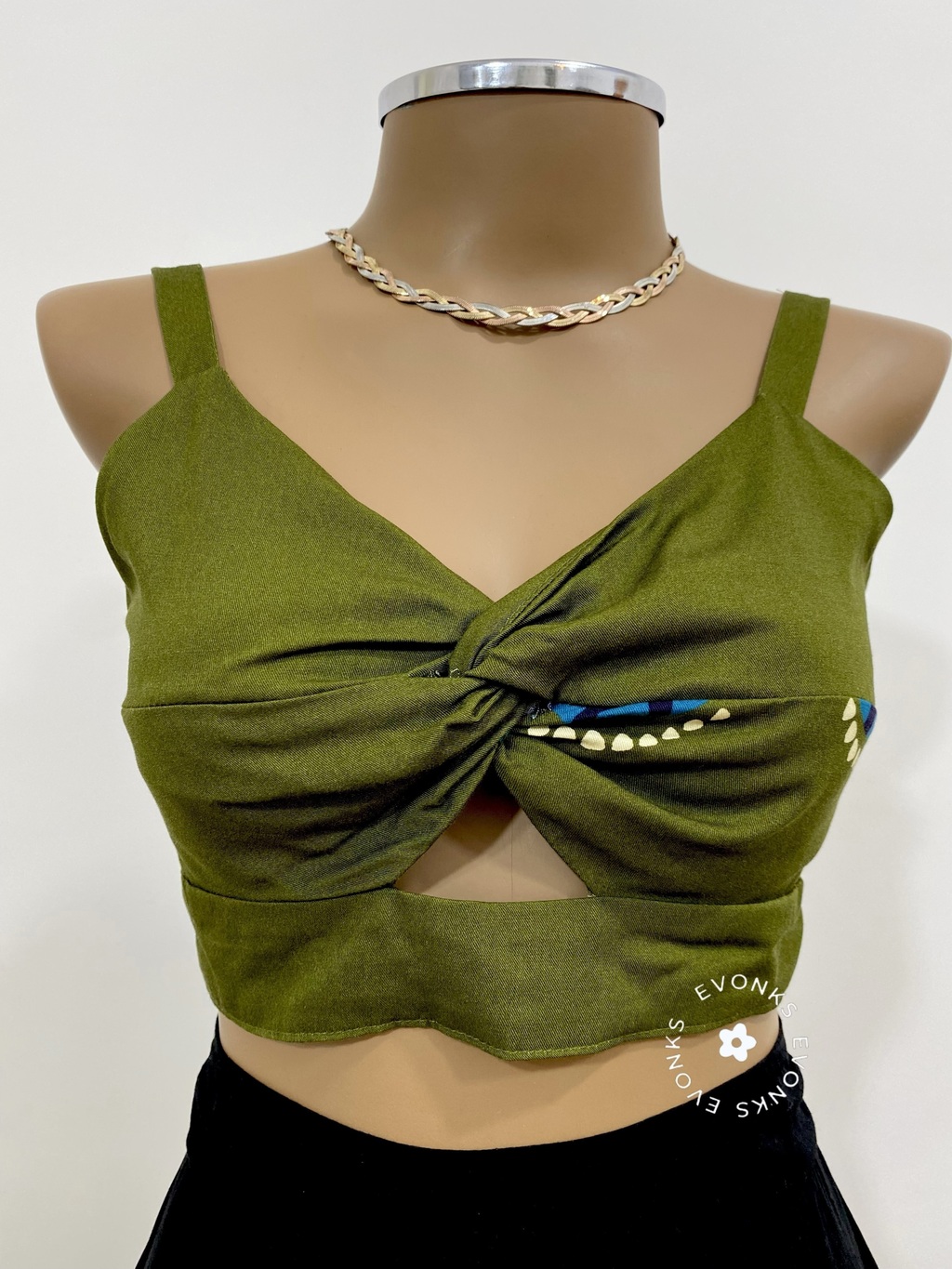 O Top Mila é confeccionado em tecido viscose que proporciona conforto e caimento à sua peça., tem as alças ajustáveis. Na parte de trás, ele tem elástico . Sem bojo e é forrado do próprio tecido.