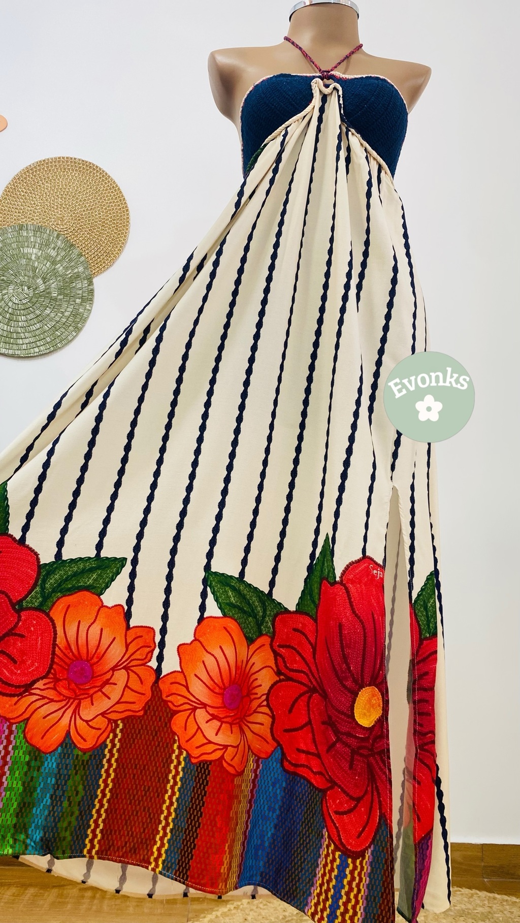 Comprimento do Vestido: 124cm + (alça regulável 119cm). A alça pode ser usado no pescoço ou laço na frente do seios)
